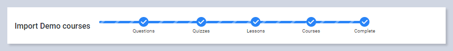 * **Import demo courses** - When you click Start Import, all demo courses, questions, quizzes, and lessons will be uploaded to the site.
