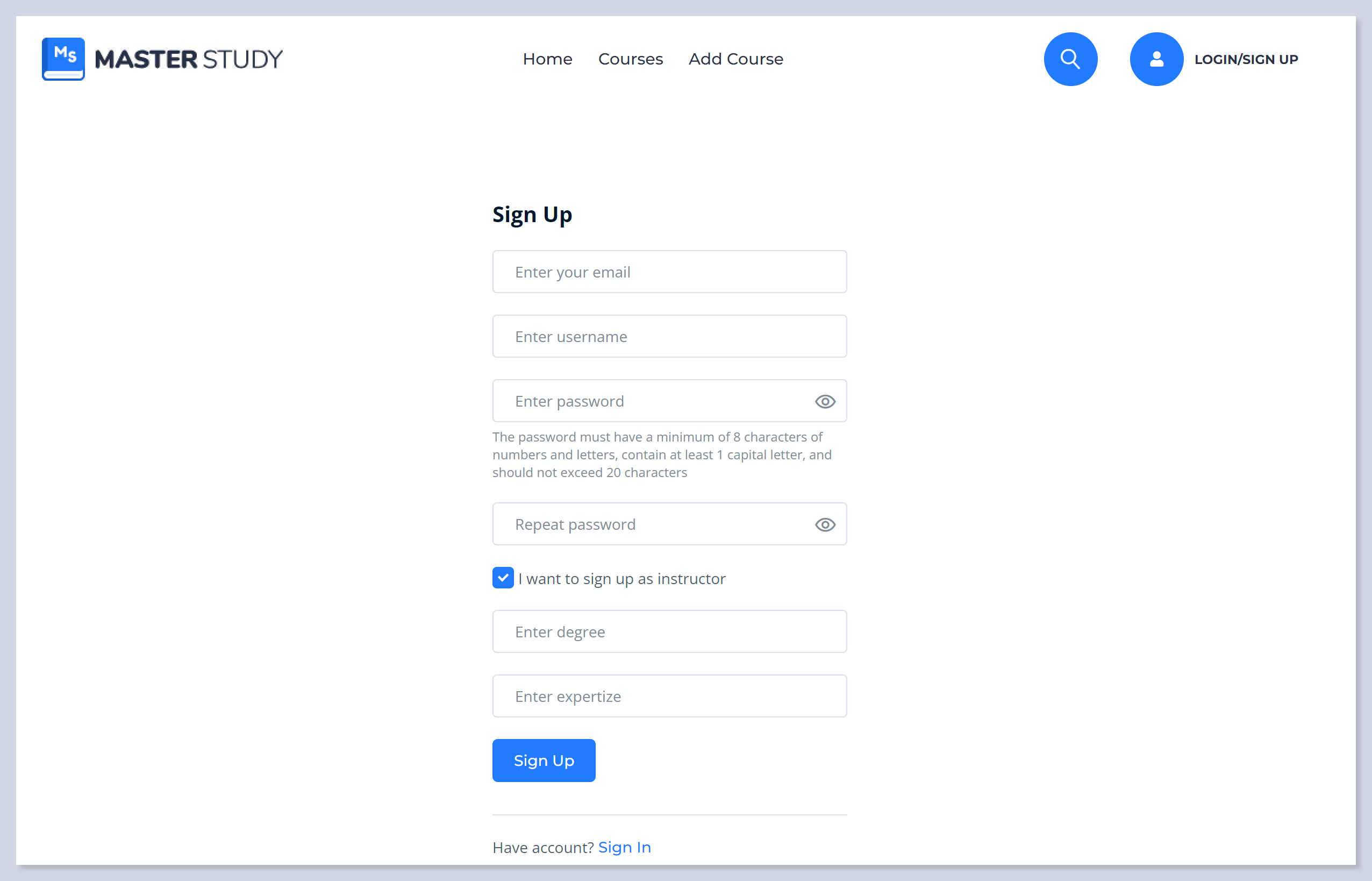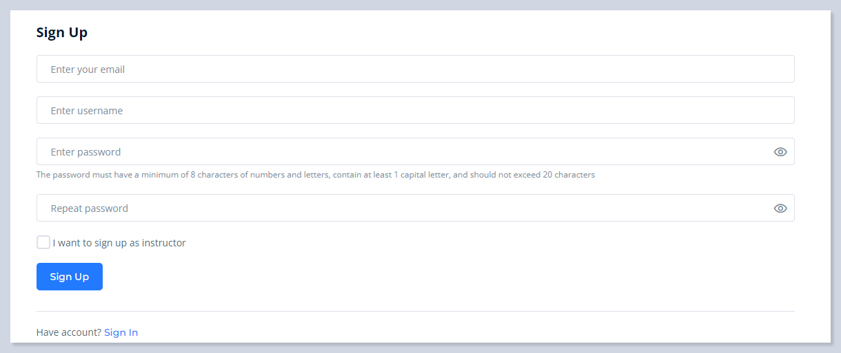 ### Instructor Registration Page