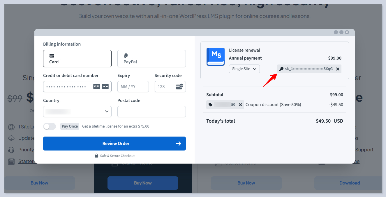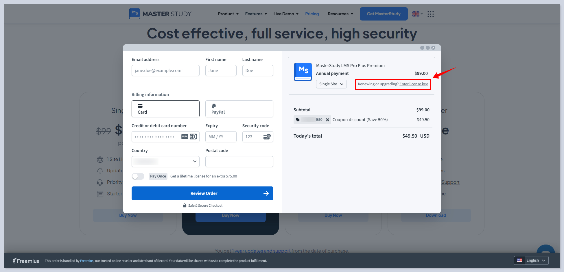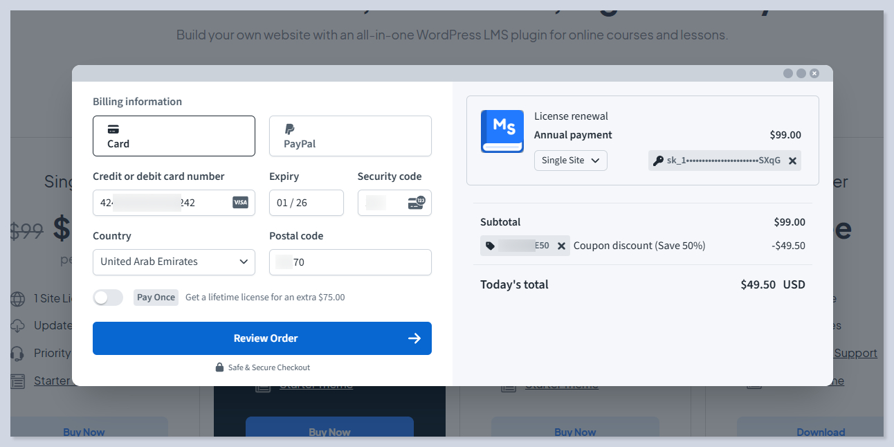 The checkout process is fully controlled by [**Freemius.**](https://freemius.com/)