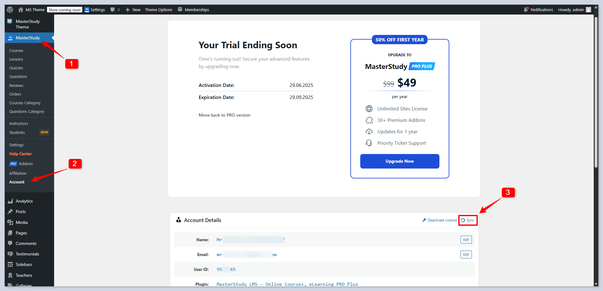 After your trial ends, you can continue using the PRO PLUS version by purchasing it. For MasterStudy Theme users only, we offer an exclusive (up to) 50% discount on the first year of any Pro Plus annual plan — whether it’s for 1 site, 10 sites, or unlimited sites (excluding lifetime plans).