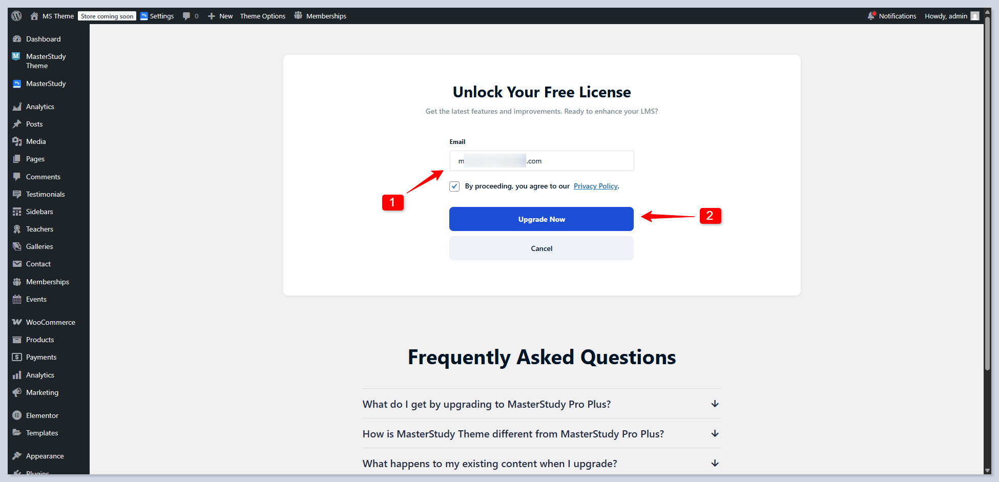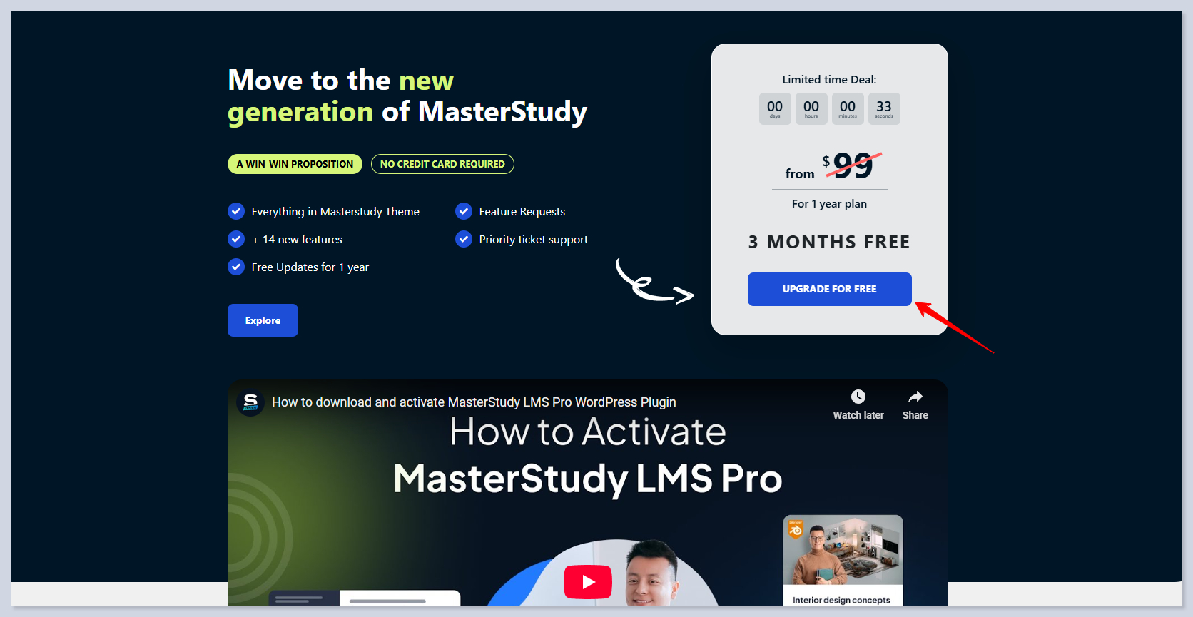 On your WordPress Dashboard, head over to the MasterStudy Theme tab. You will see the special offer here: