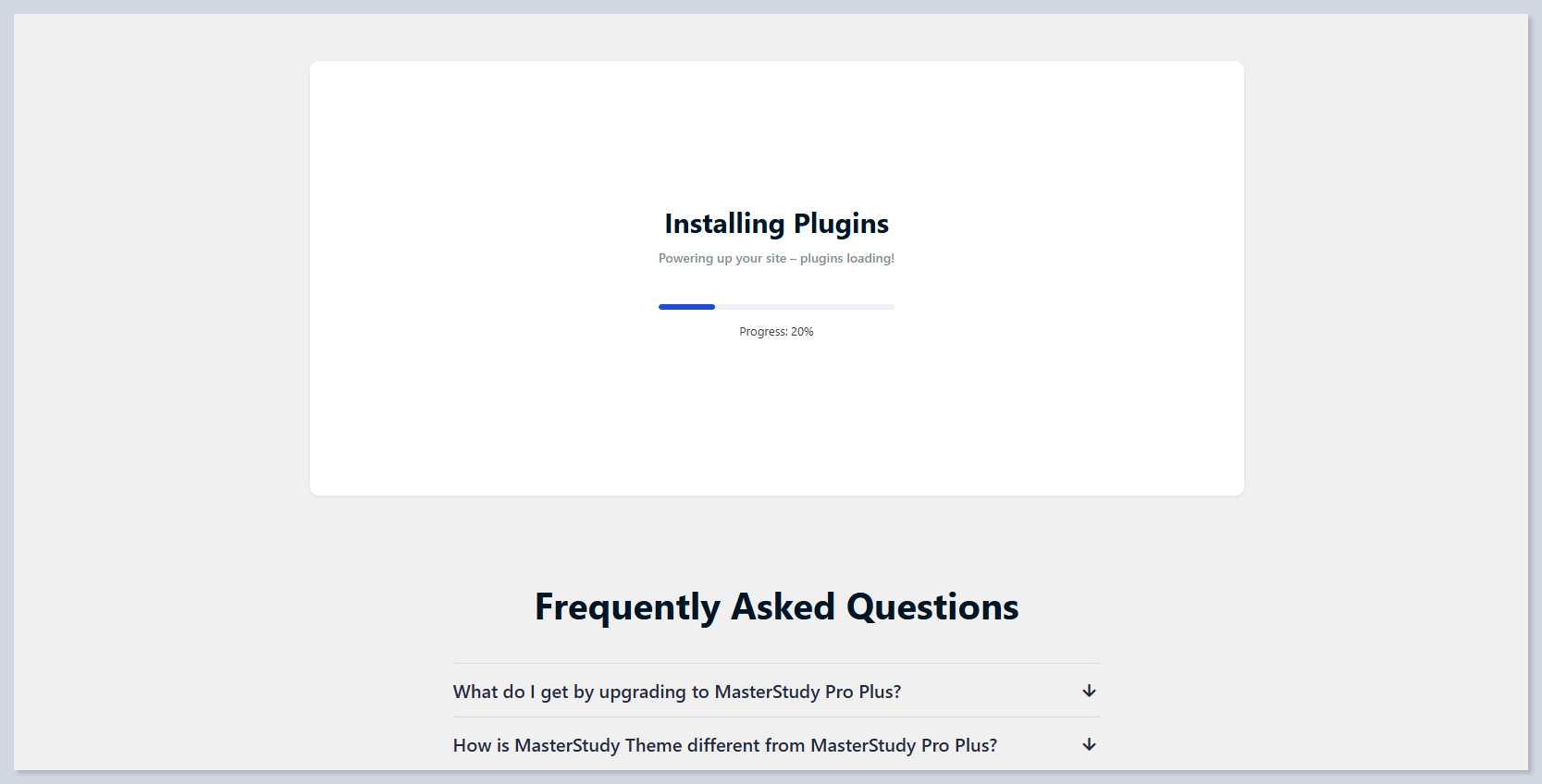 **Do NOT close** the tab and wait patiently while the system is installing the **MasterStudy Pro Plus:**