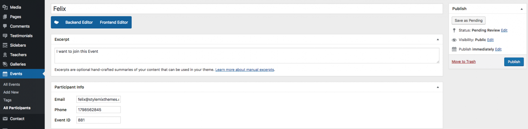 All the content of the Event page can be built by means of WPBakery Page Builder. And there is a main Information section for the Event details: