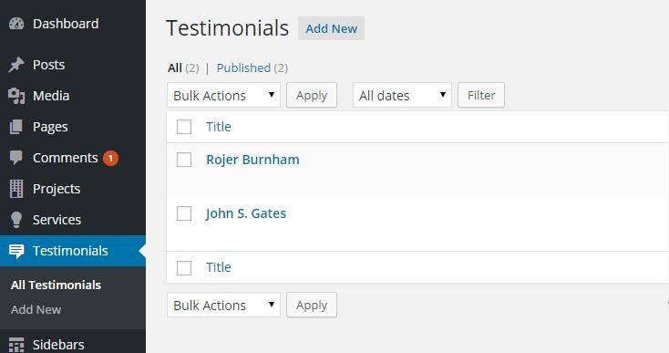 In order that you could create testimonials in one place and then use all over the site, just inserting a VC element, we have created custom posts.
