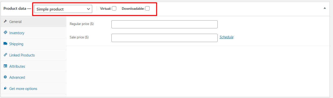 In the Product Data section, you can find the majority of your product settings.
