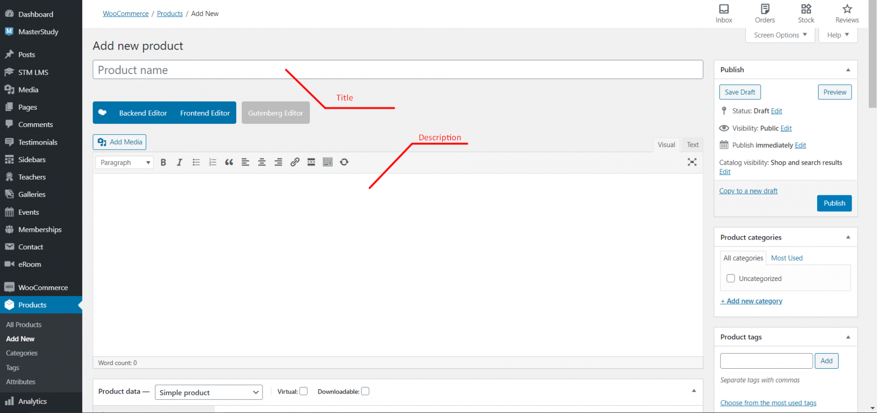 Follow to Products > Add new