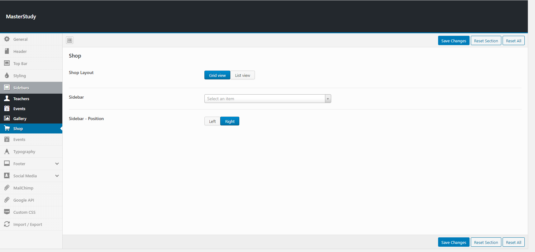Go to Theme Options > Sidebars section here choose Right Sidebar or Left Sidebar and select the Shop sidebar to enable sidebar in Shop Page.