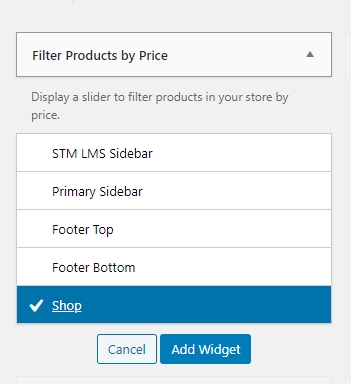 Just click on the widget, select the Shop option, and Add Widget or drag and drop the widget to the Shop.