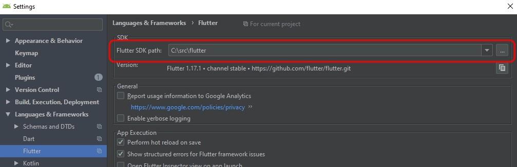 Then move on to the Flutter tab and enter the Flutter SDK Path.