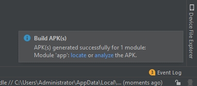 This will lead to the app building process, and once it finished Android Studio will display a specific notification in the bottom right corner.