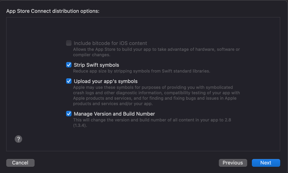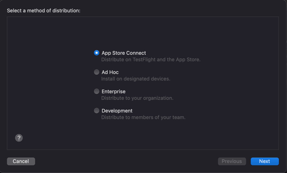 Tip: For detailed overview of the signing options, have a look at the Distribution signing options guide.
