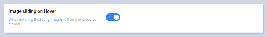 When this option is enabled, hovering over listing images will activate a preview slider, allowing users to see additional images for that listing without having to click into the detailed view. This feature enhances user interaction and makes browsing listings more convenient.&#x20;
