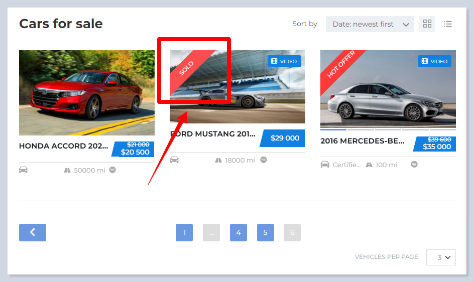 Enabling this option allows you to display a "Sold" badge for vehicles that are no longer available. This provides transparency to users and prevents confusion about which listings are still active.