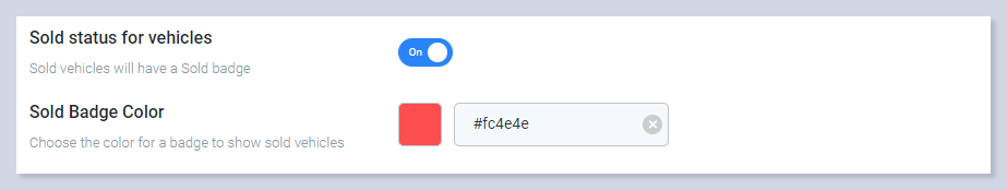 * **Sold Badge Color** - this setting allows you to customize the color of the "Sold" badge that will be displayed on sold vehicles.&#x20;