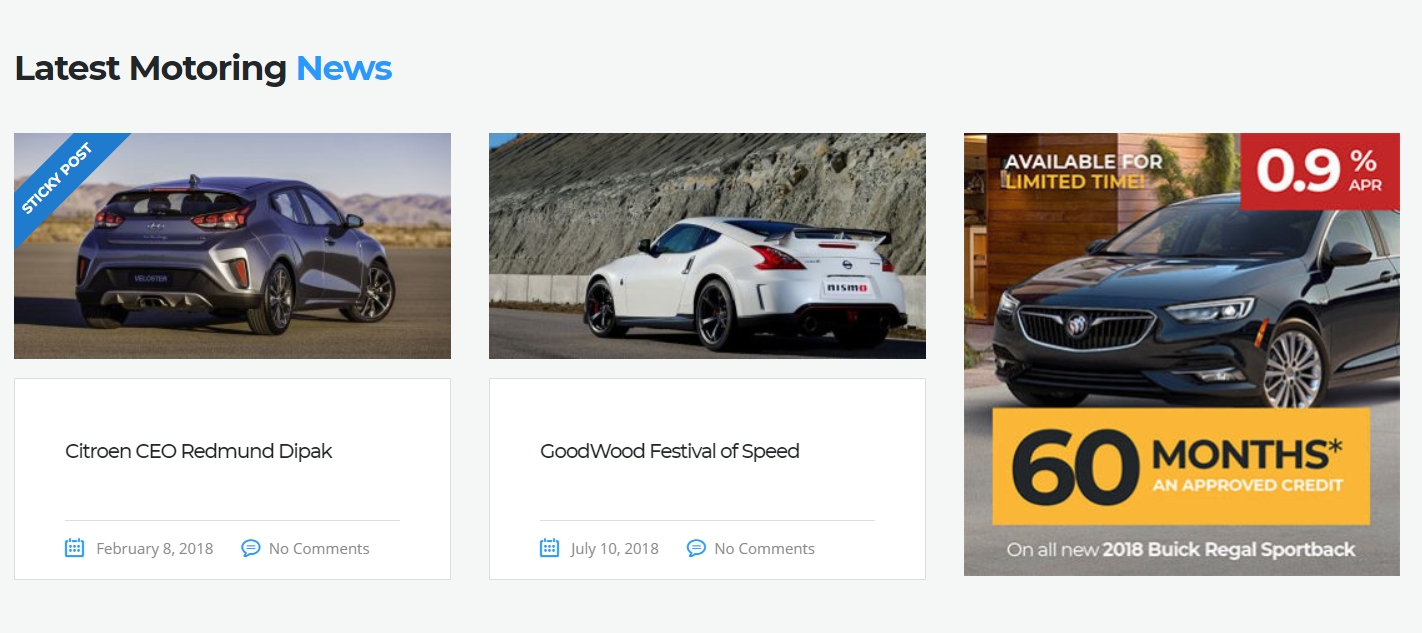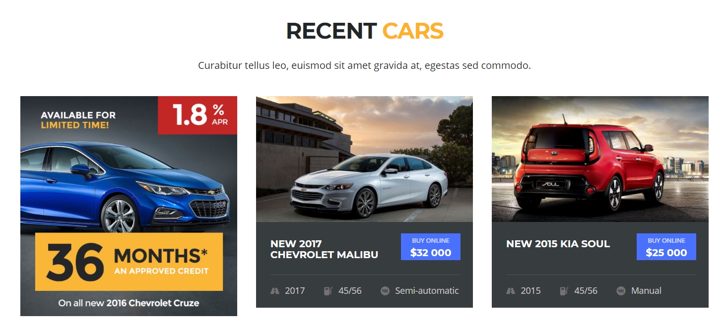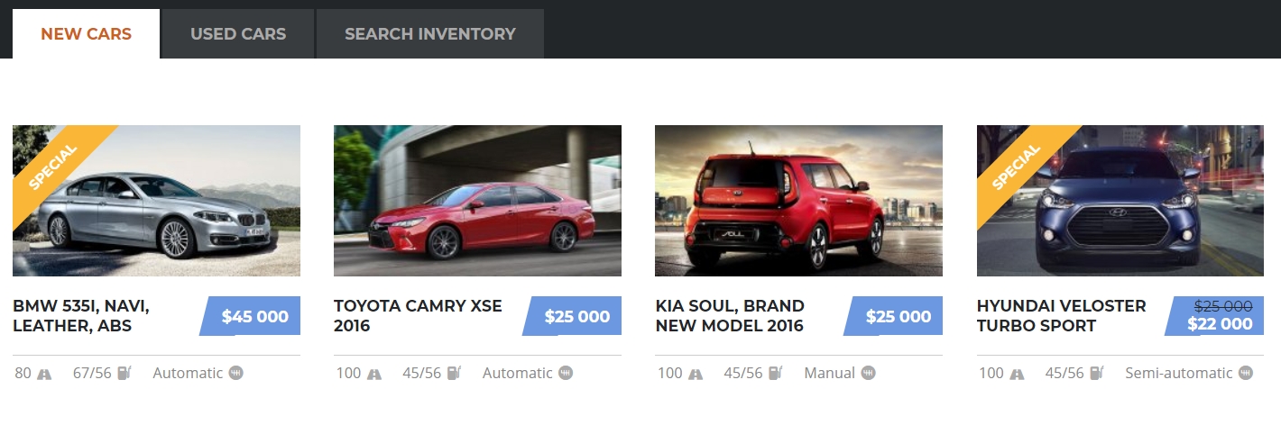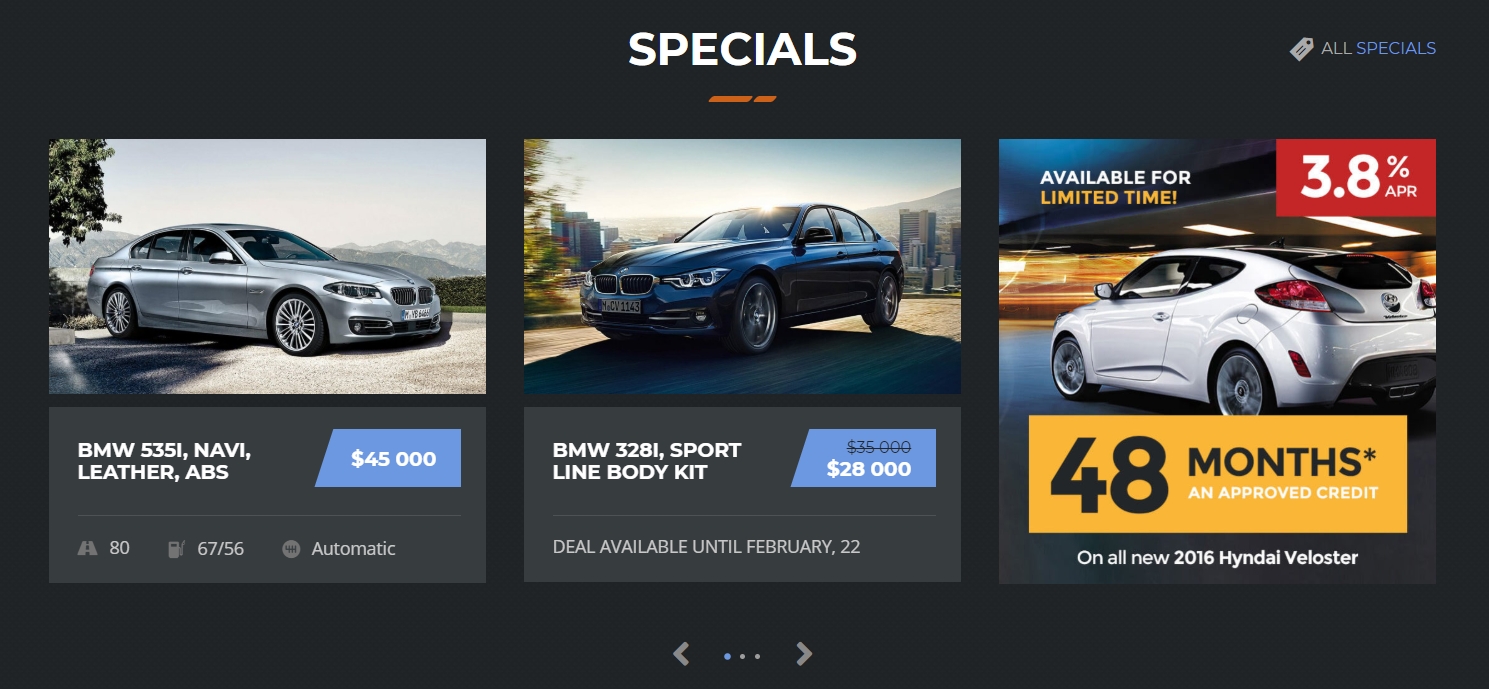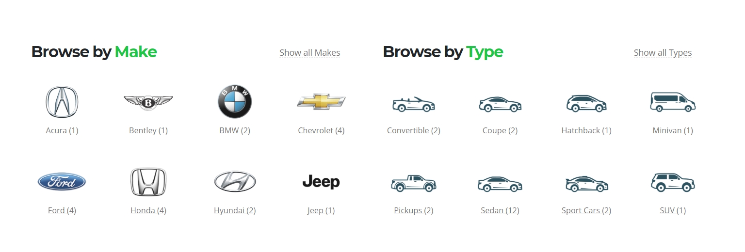 Motors Layouts which support this option: Car Dealership One, Car Dealership Two, Classified Listing One, Classified Listing Two, Classified Listing Three, Classified Listing Four.