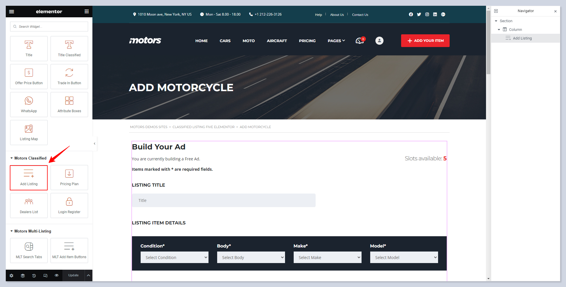 Submit Listing Form With Elementor