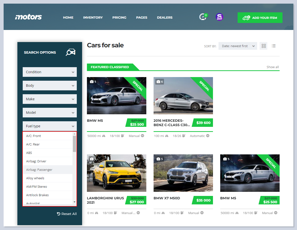<figure><img src="https://2954064479-files.gitbook.io/~/files/v0/b/gitbook-x-prod.appspot.com/o/spaces%2F-MDP3ivYPbpYO9Rs_wuB%2Fuploads%2Fbn0V5owSkQCGYc3sh2hb%2FMotors%205.20%20-%20Classified%20Inventory%20with%20Aditional%20features.png?alt=media&#x26;token=5e9bfee9-36d0-4215-a030-d913840a7e9c" alt=""><figcaption></figcaption></figure>