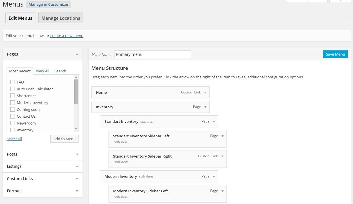 There are two navigations on the site – Header menu and Footer menu, so you can adjust them under Appearance -> Menus