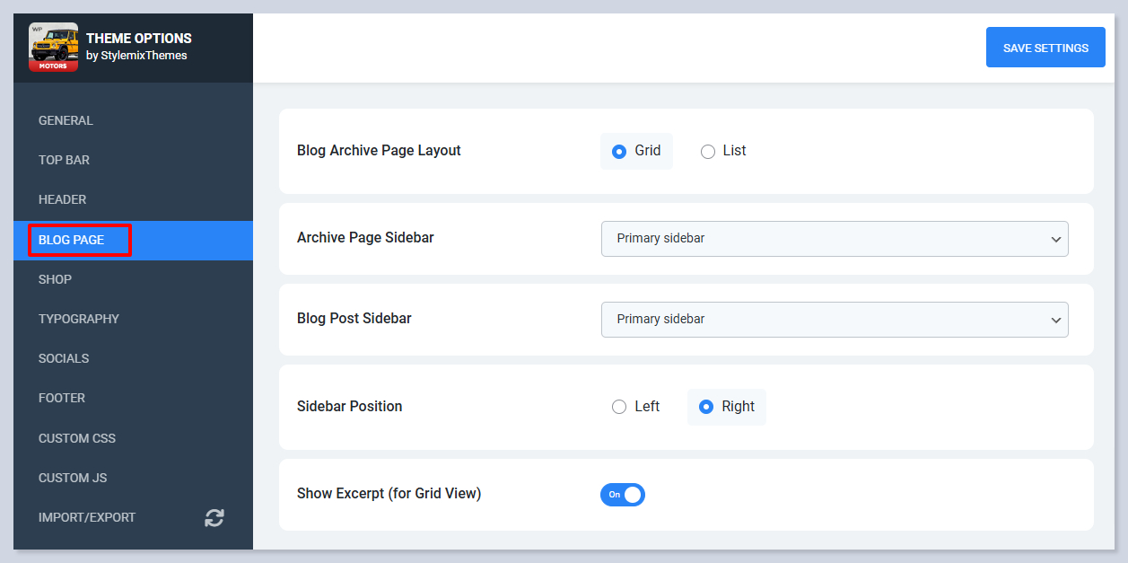 On the **Blog Archive Page Layout** are&#x61;**,** you can choose the layout type of archive page: **Grid** or **List** view
