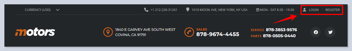 For the Dealership layouts (Dealership One and Two, Aircraft, Boats, Equipment, Motorcycle dealer), the login feature will allow the user to log in to the WooCommerce account only.