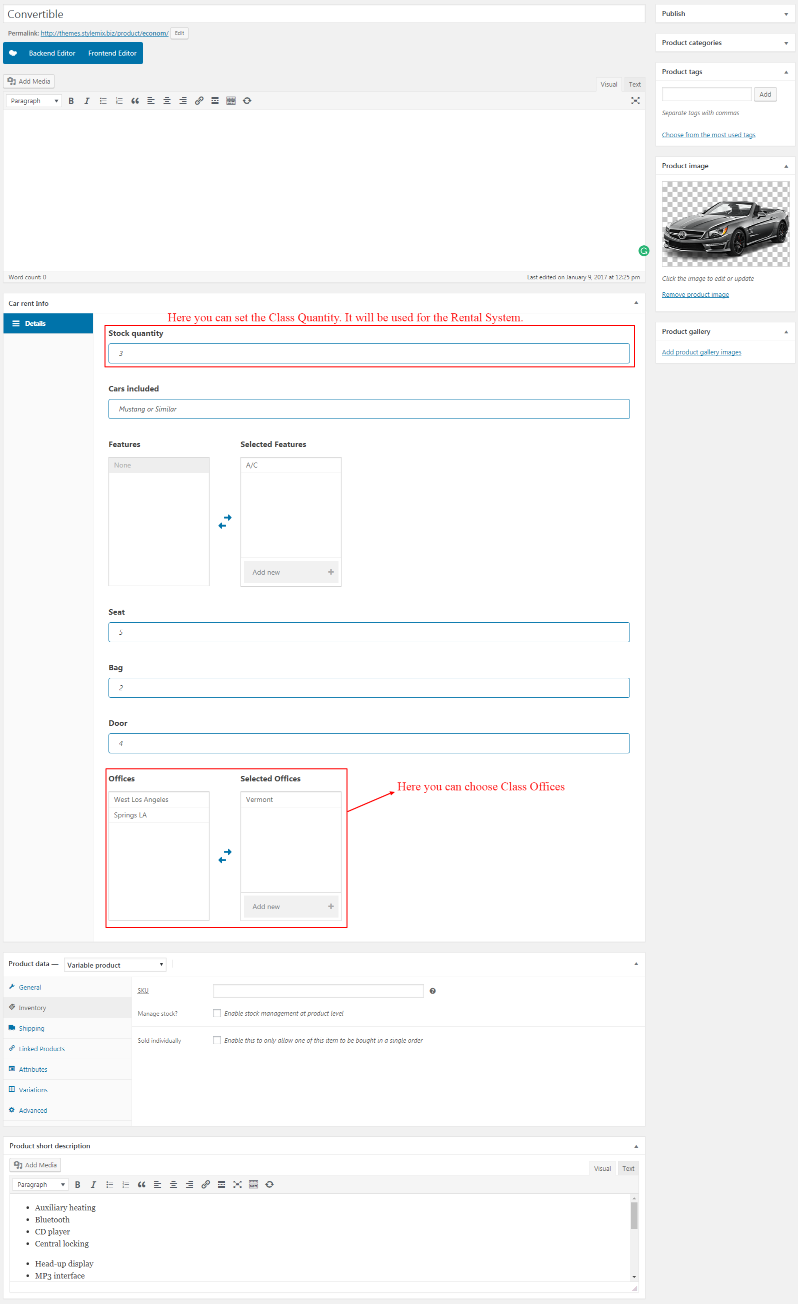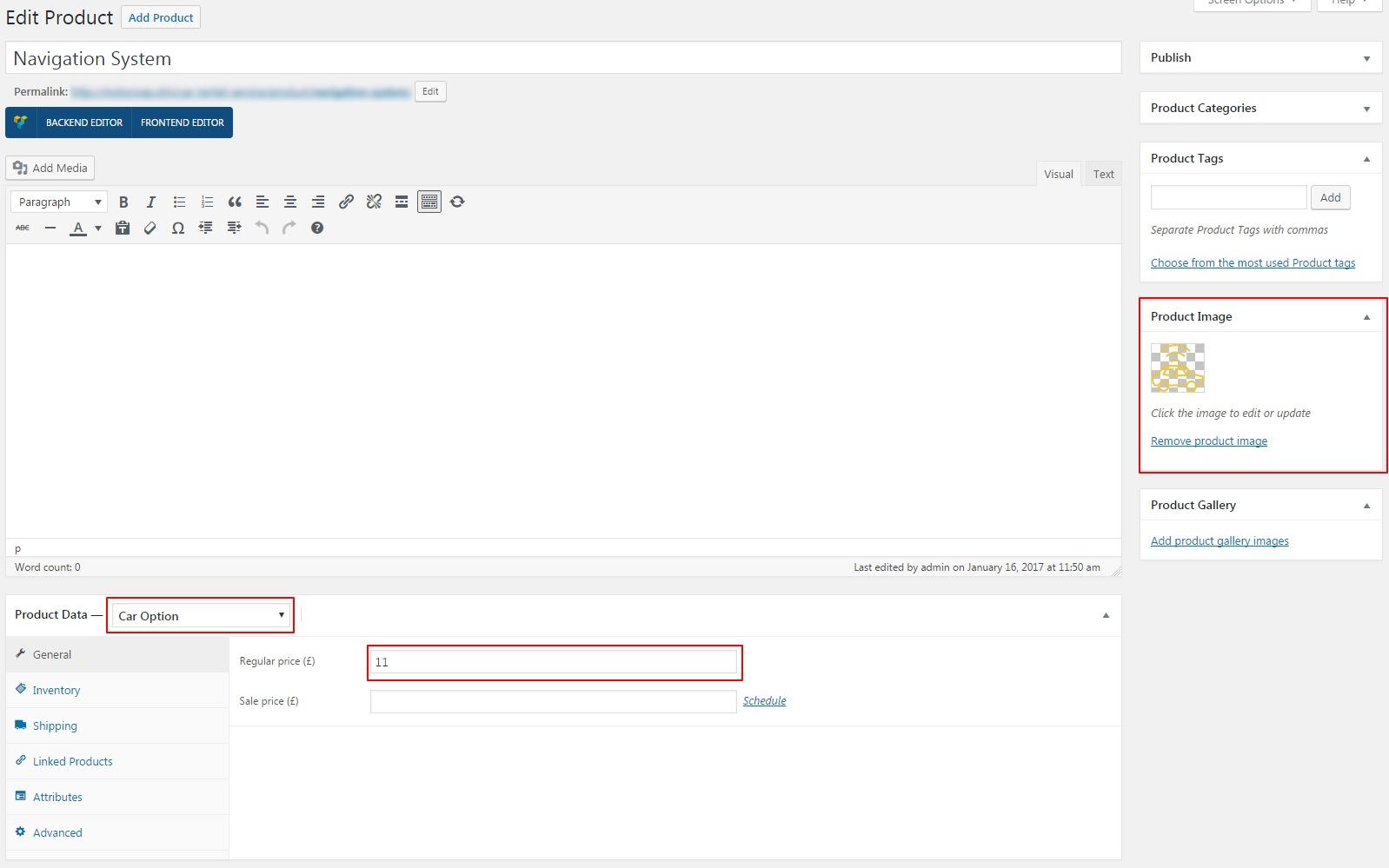 You need to change a Product type to Car option in order to separate this product from standard products. Besides this, it’s possible to set Price and Image doe this option.