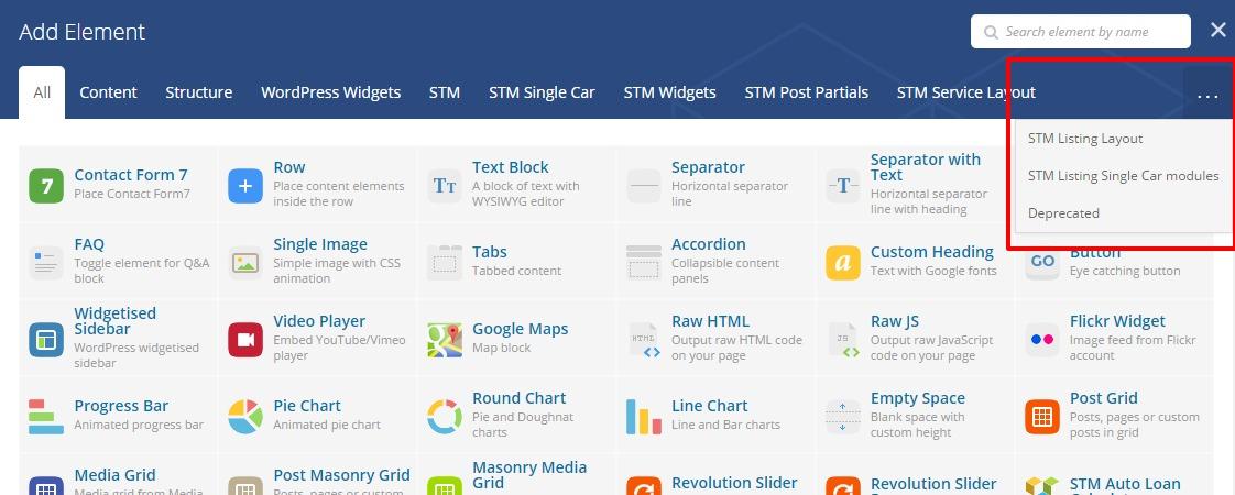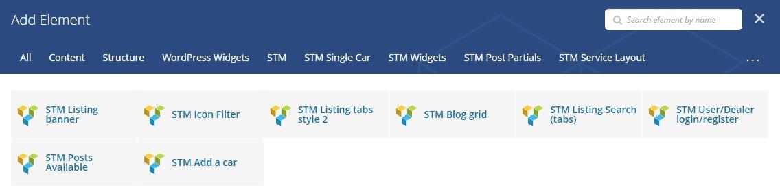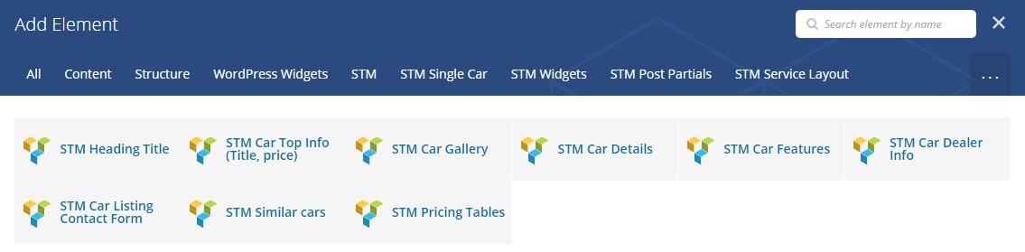 You can find new added modules under STM Listing Layout and STM Listing Single Car modules.