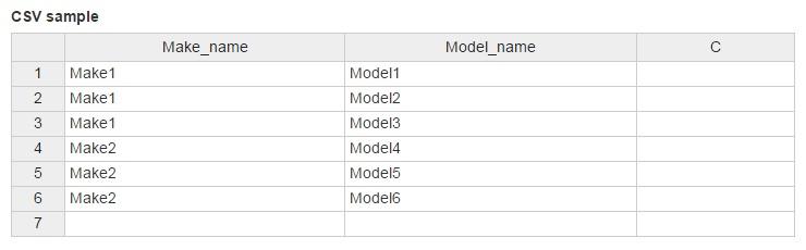 The parent-child relationship between Makes and Models can be imported in bulk using the manual provided below.
