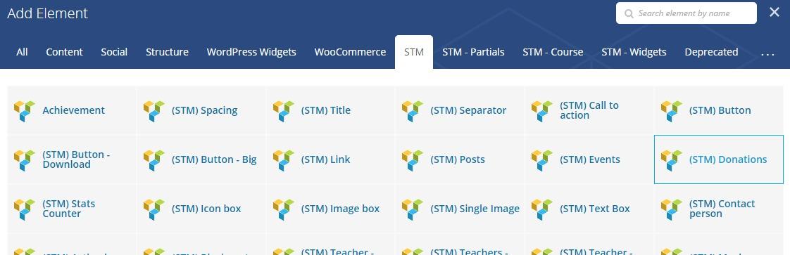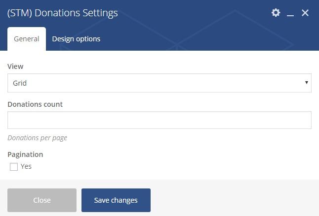 On the new page you can insert STM Donations shortcode from Visual Composer and setup its settings.