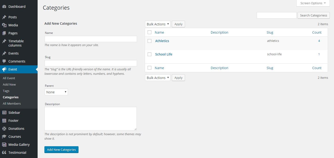 There is a Events Category taxonomy in order to separate your Events by category. You can add/modify them under Events -> Categories.