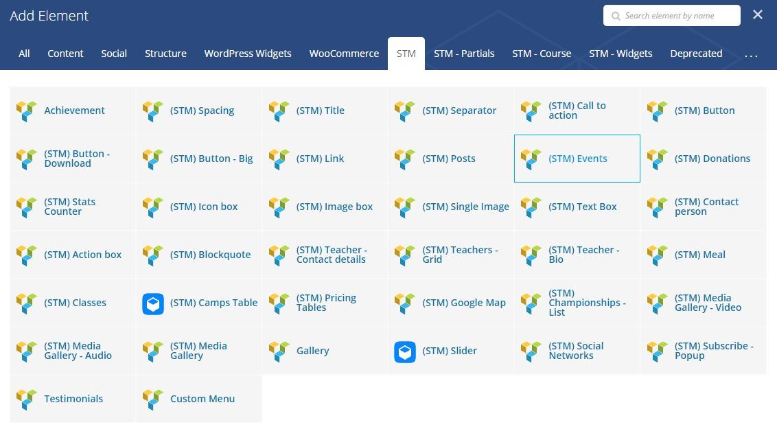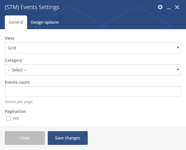 Also you can add Events as for any page using custom STM Events VC element. This module also has its own settings
