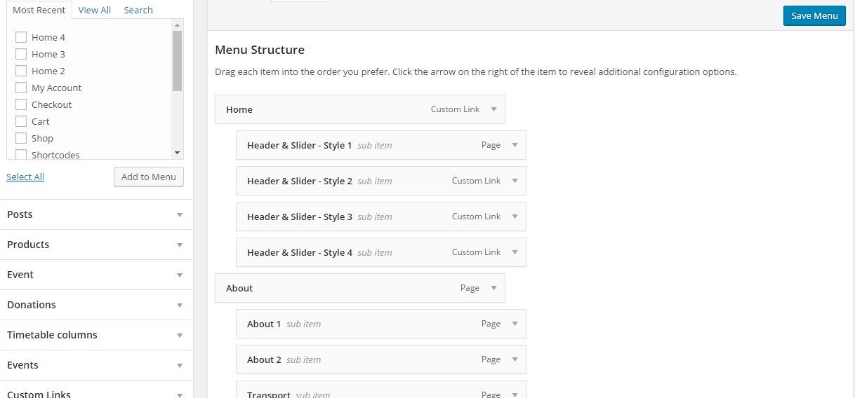 There are two navigations on the site – Header menu and Footer menu, so you can adjust them under Appearance -> Menus