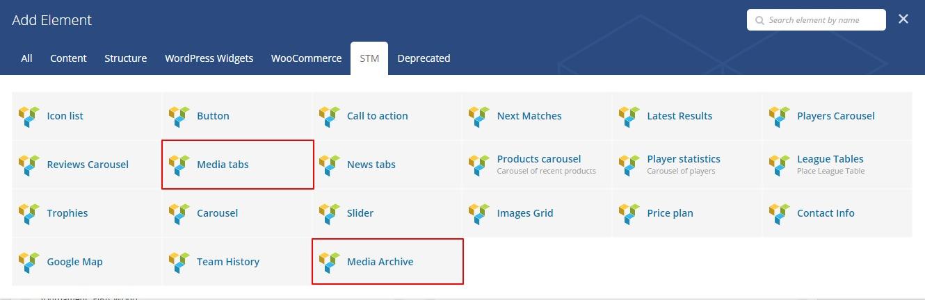 Besides Title and Images you can set Gallery Format, Category(es), Description, Link or Embed code for each gallery post. Also it’s possible to set a post as a Featured. For displaying your Media Gallery you can use one of the extra VC Modules in any page.