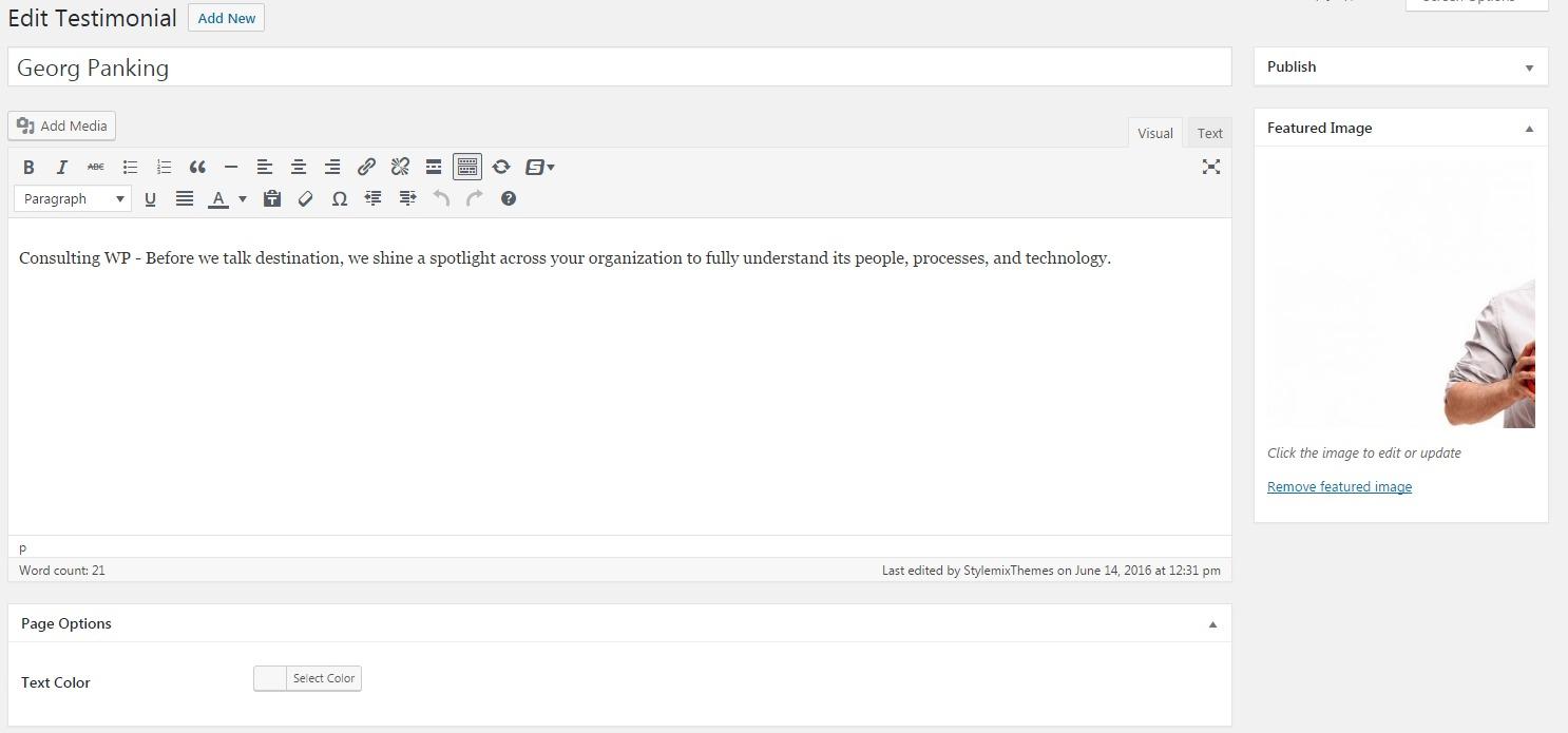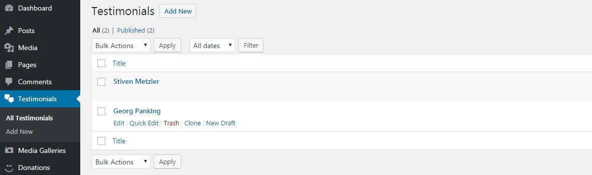 In order that you could create testimonials in one place and then use all over the site, just inserting a VC element, we have created custom posts.