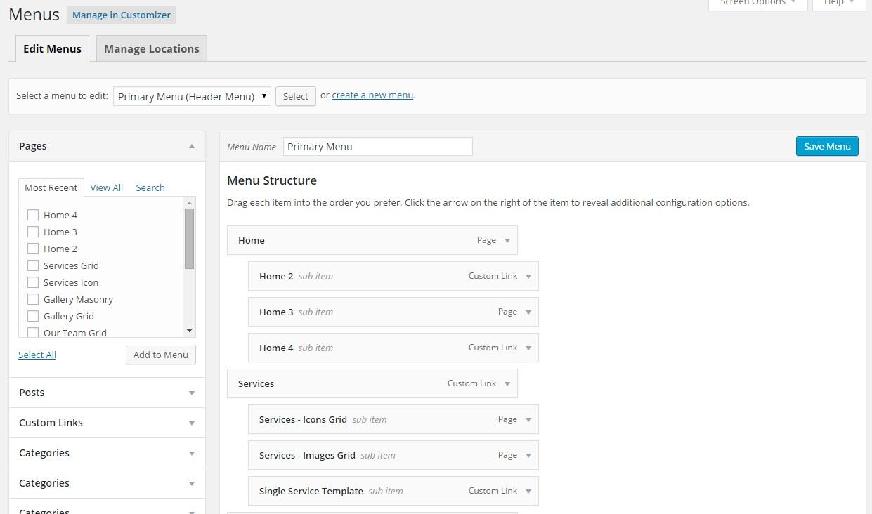 There are two navigations on the site – Header menu and Footer menu, so you can adjust them under Appearance -> Menus
