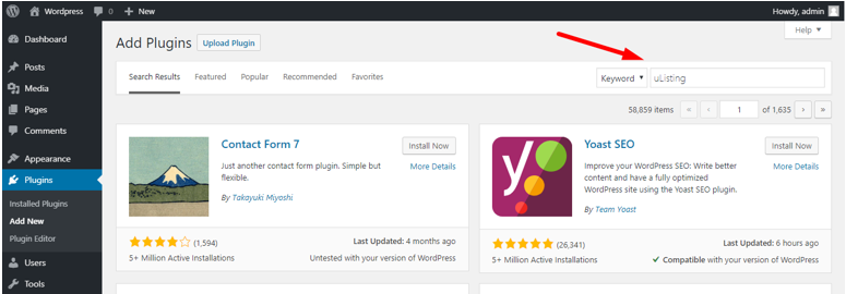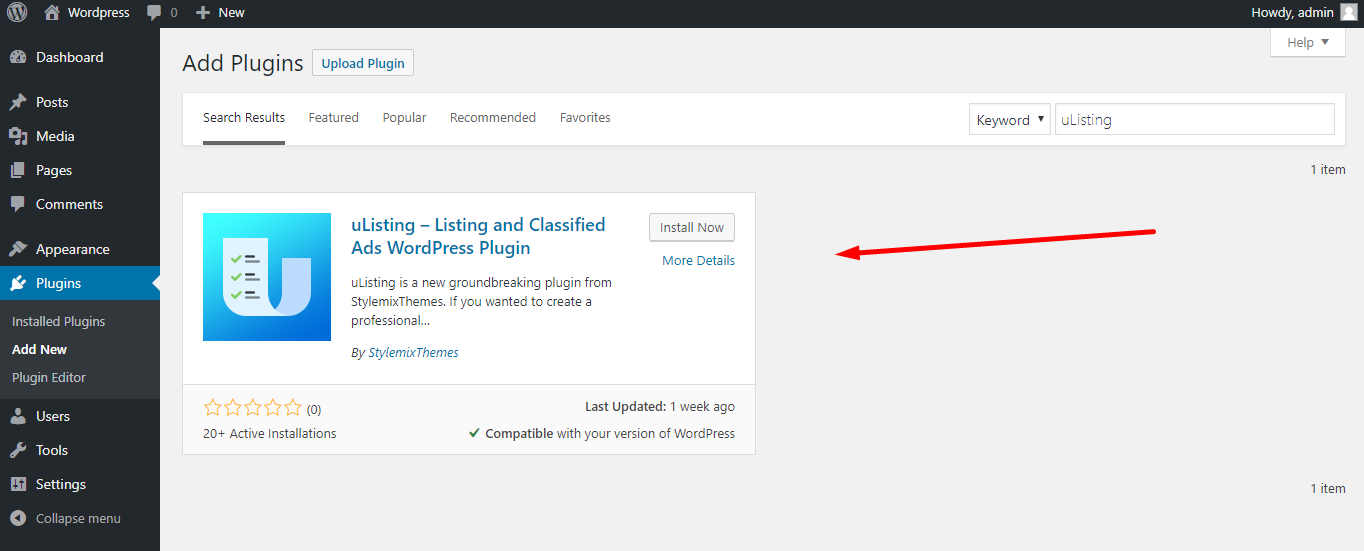 Installing “uListing” plugin is just like any other WordPress plugin and it can be installed in two easy ways.
