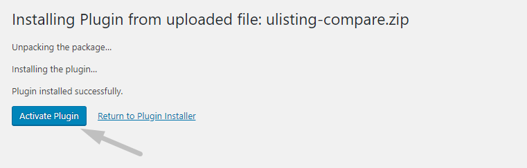 After installation, click the "Activate Plugin" button to activate the uListing compare add-on.
