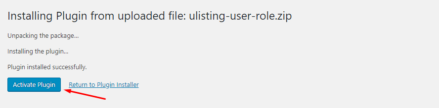 After installation, click the "Activate Plugin" button to activate the uListing User Roles add-on.