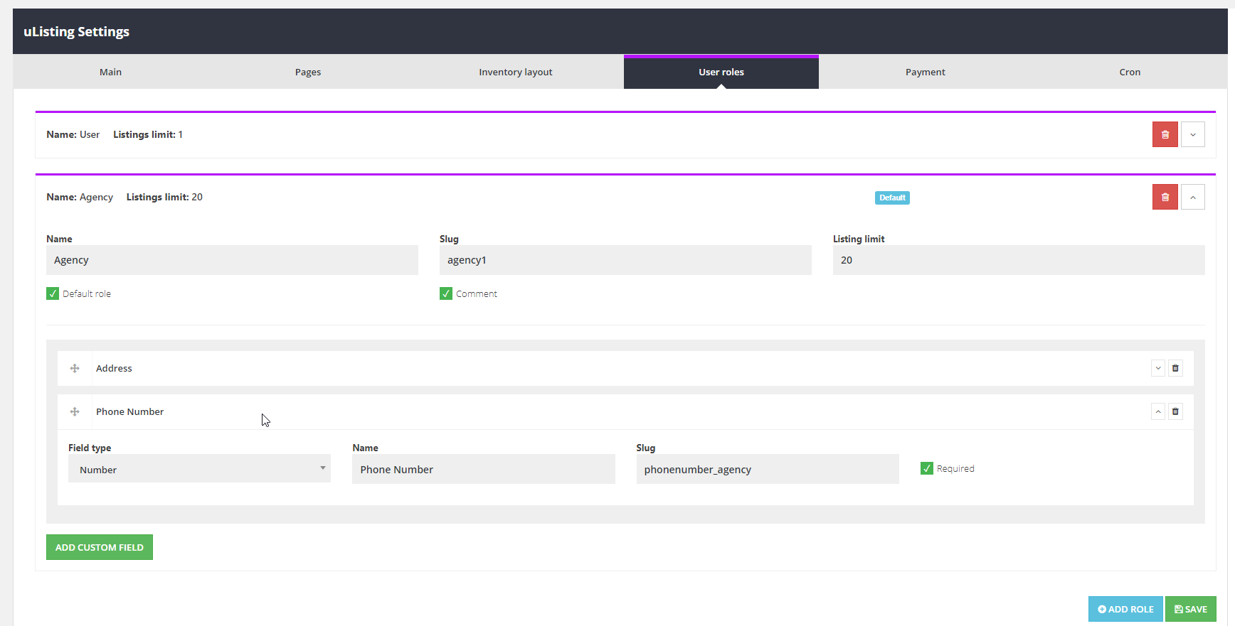 uListing User Roles is one of the additional add-ons to our free powerful uListing plugin that ads a feature to create different and several User Roles for a user and attach each of them a different amount of available listings. You can give each role a custom name and amount of available listings.